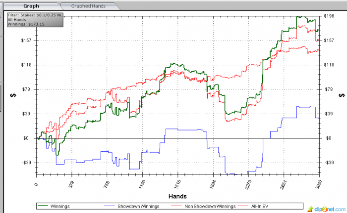 За первые 5 тыщ рук имел что-то около 47 бб/100. Просто кулеров в мою пользу насдавали на год вперед. После почти 100к теперь честные 3.6 бб/100. Так что дистанция исправит, не радуйся.