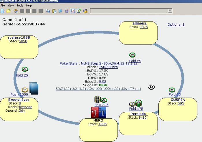 GRAFin @ 21.6.2011 В банке после рейза UTG 1600 тебе надо доставить 700. С против 36% с которыми пушит UTG у тебя слабоплюсовой колл(имхо очень пограничное решение). И это для простого СНГ на 9 тел. В визарде можно(а тебе нужно) выбрать в настройках именно степ турниры и посчитать еще раз)