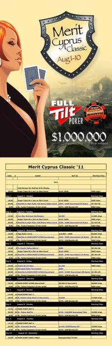 В связи с приостановлением работы сайта Фулл Тилт Покер, а именно на нем должны были проводиться сателлиты на турнир, гарантия Merit Cyprus Classiс изменена: 850 000 долларов на всю серию 500 000 долларов на Мейн Эвент.