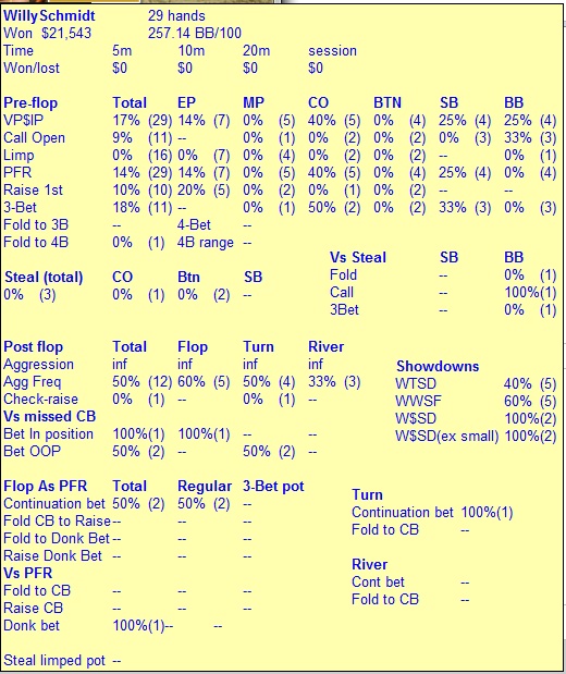 WillySchmidt (BB): t9811 M = 15.09shipopatamus (UTG): t4800 M = 7.38