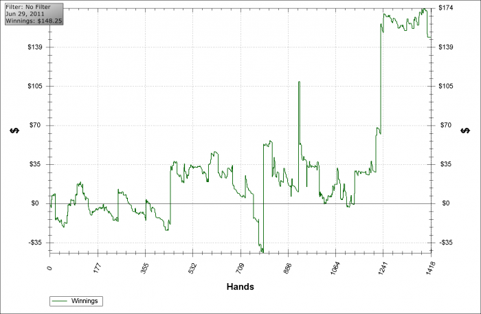 Играю в покер уже давно, но из-за того что много бездельничаю продолжаю болтаться на лимитах нл50/нл100. Впрочем, этим дневником и собираюсь эту лень искоренять.