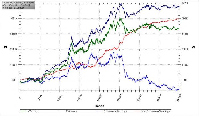 В начале 2011 года решил перейти в кеш, для упрощения перехода я начал со стратегии ССС (я привык играть по 24 стола). С января по март гриндил ССС на рейкбек (лимиты НЛ25 - НЛ100):