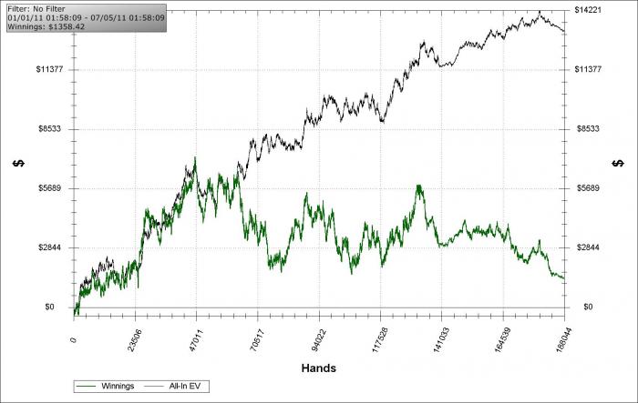 Еще раз посмотрел графики и фильтры, видимо все дело в красной, слишком много сливаю при моих статах. И есть проблемы в битве блайндов. Сегодня постараюсь играть более собрано, в идеале сыграю с кем-нибудь совместную сессию. А завтра днем анализ всех сыгранных рук.