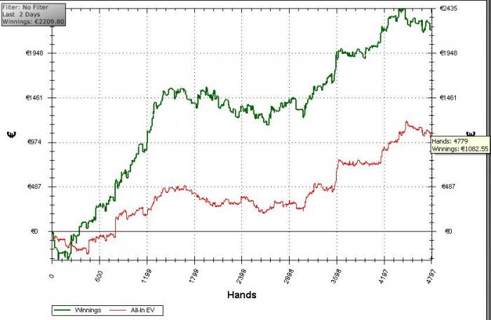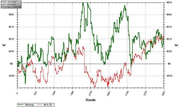 Когда то в сети был интересный персонаж, он играл закупаясь с 20 до 55 со всеми, на всех столах выше нл400, и когда их было мало - он играл добавлял нл200евро. Винрейт у него был какой то космический - 3птбб+ (рук было на него 40-50к, но думаю минимум 2птбб там 100% было, сейчас его не видно долгое время - наверное ушёл выше, может мультрумил или перешёл на старзы) Я специально потратился на маининг. лимтов тех которые не играю и пытался понять каким образом он это делал. Я немного не понимал почему некоторые статы такие какие они у него были. Тогда у меня ничего не получилось.