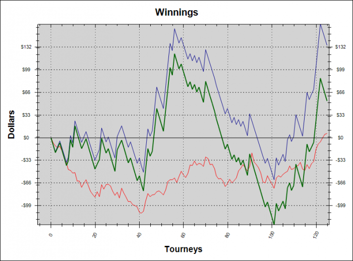 всем привет! заработав 3 тысячи руб разгрузив фуру в начале этого месяца я подумал что неплохо бы загрузить их в покер и сколотить себе 5 значный $-банкролл до конца лета написав пару объяв на cgm на счет аффилейта я выбрал наиболее подходящее мне, зарегистрировался, задепил, запросил бонус, отмыл его вчера итог хотел бы заметить что первые пару-тройку дней я слил свой депозит, играя сначала 5$ ST hu sng, затем спустившись на 2$...проснувшись на утро заказал 22$ кешбека и поймал апчик последние 400 турниров я играл исключительно 10 макс нетурбо снг и по ним у меня накопились некоторые вопросы на которые с вами я хотел бы подискутировать вот график пока жду кешаута, решил уделить немного времени разбору своей игры ну а пока пойду до беседки пожарю мяса и в прудик всем удачи, надеюсь писать регулярно