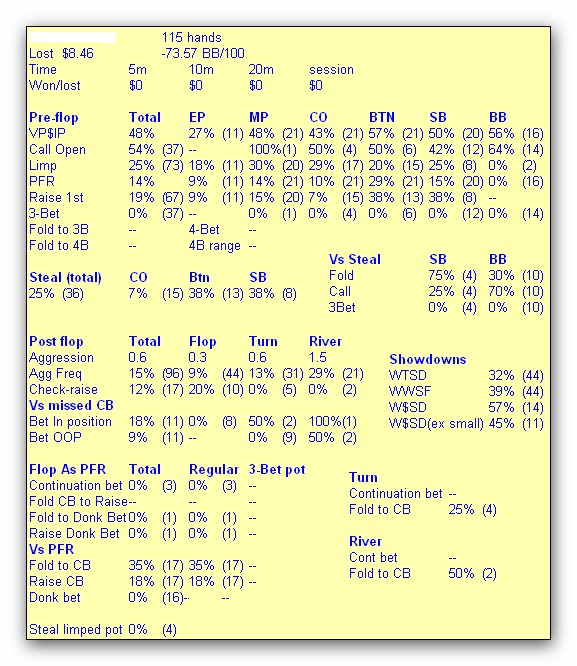 Но проанализировав в реплеере пфр оппонента, всё же не думаю, что есть QTo, и далеко не факт, что есть QTs. Но даже если есть QTs, то я всё равно не дотягиваю до 26% эквити. Таким образом, мне следует фолдить.