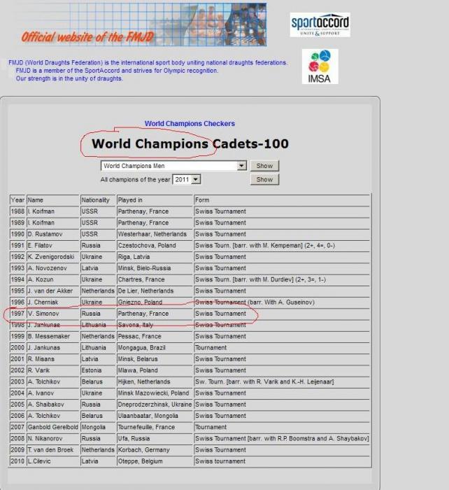 Сейчас существует много разновидностей этой игры, мои основные достижения относятся к международным шашкам (они же 100-клеточные). В них играет большинство стран нашей планеты. В России, конечно, больше распространены русские шашки (64-клетки), с них все начинают, в них можно играть шахматными фигурами на шахматной доске. Начинал с них и я.