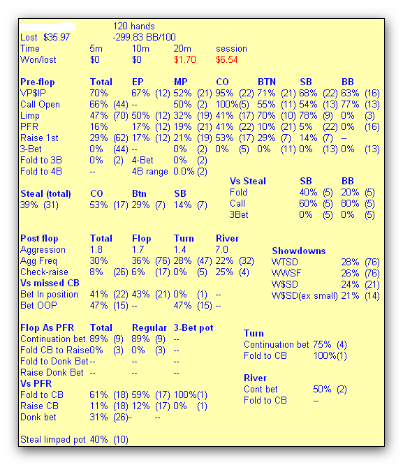 Если отталкиваться от его показателей рейз кбета, агрессиии, WWSF это инста фолд. Оппонент не выглядит мувером и очень пассивен. Тут уже нужны нотсы, способен ли он так играть с слабым тузом. Тот факт, что он мало выигрывает на вскрытии не означает, что он это делает когда рейзит кого либо.