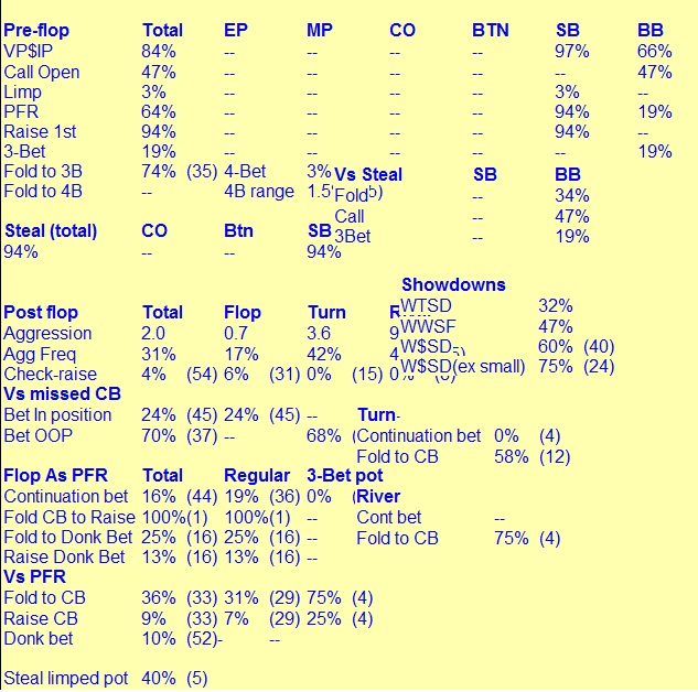 В тему расширения впипа с бб думаю против него нужен полярный 3бет т.к. он почти не 4бетит и падает хорошо. Я не знаю какой у тебя стил с бб, т.е. если 100% то его впип в 66 еще можно хоть как-то понять,если же ты открываешь 70 или меньше, то этот лик будет стоить ему много денег.