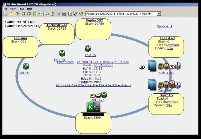доверять визарду в 3 way аллинах ( а именно его цифрам) да еще в такой ситуации что у тебя 2.5 бб а у шорта 1/3 бб нет смысла, он не может это верно посчитать. В такой раздаче нужно полагаться на свое понимание турнирного покера.