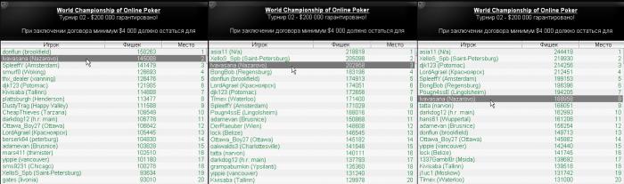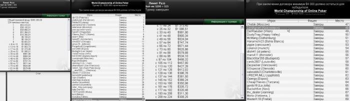 Что это - неплохой результат или главная неудача всей покерной карьеры? Я играл на двух никах (мой брат делал ходы под ником LordAgrael). С самого начала турнира было множество помех игре, но главное было то, что соперники попадались слабые и несмотря на все трудности удавалось увеличивать стек. Пережив в середине турнира черную полосу далее мы стабильно набивали стеки и когда оставалось 127 игроков мы (я) были на 2-м и 13-м местах, при 68 игроках мы были на 4м и 7м местах. Если бы в этот момент мы просто скидывали все карты или пошли, скажем, погулять, то заняли бы наверно 15-20е места. Но я с самого начала был нацелен на первое место (1,7 млн. рублей) и играл в полную силу, рискуя потерять свои огромные стеки или же выйти на первое место. И вот здесь началась самая черная полоса за несколько лет игры - я стал проигрывать почти все банки подряд на обоих никах. Брат вылетел сразу, а я хоть и поднял свой стек после двух побед (в первой раздаче я был в олл-ине) до 270000, больше не выиграл ни одной раздачи. Печальный итог: 9,5 часов игры, пачка сигарет, 0,5л бёрна и вылет на 35-м и 48-м местах.