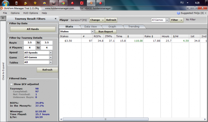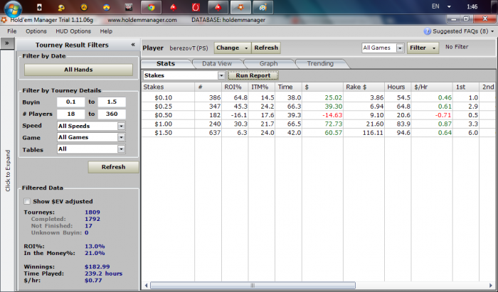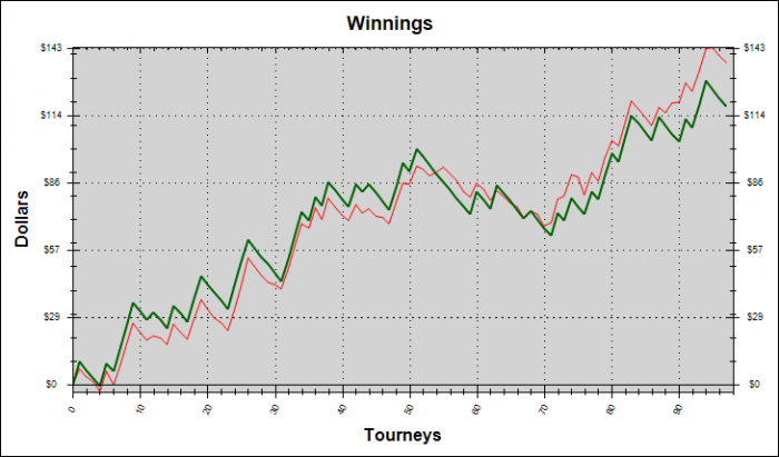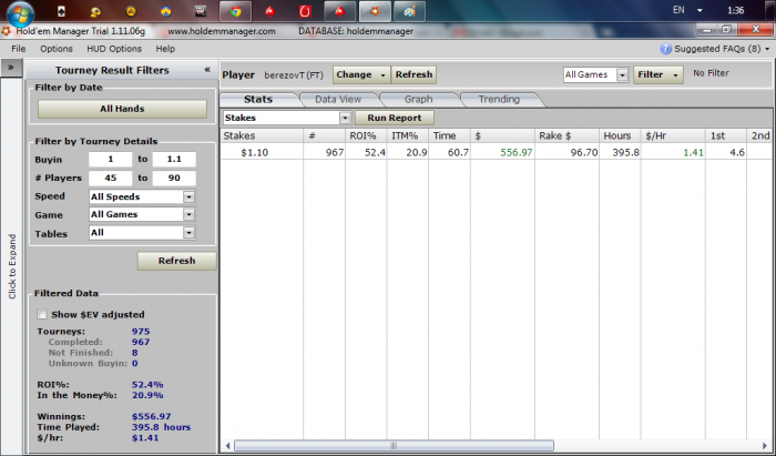 как громко сказано) на MT SNG и MTT. Основной дисциплиной была игра $1.1 45 + 90 max на FullTiltPoker (