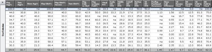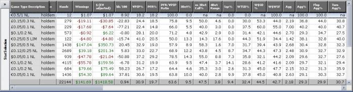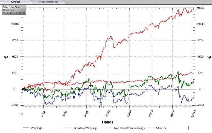 WTSD. Тут важен баланс. Когда мы вскрываем по тузу хай или второй паре это конечно очень дисперсионно и каждый раз мы так делать не можем. Очень скоро, после того как оппоненты увидят это, они подстроятся и будут пробовать тонко добирать (или блефовать на 3-м уровне мышления). Но скорее всего они будут ставить по карте либо сдаваться на поздних улицах. Действительно, нужно уменьшить этот показатель.