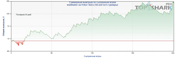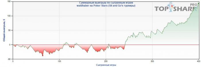 Пишу дневник прежде всего для себя. Дабы блюсти дисциплину, отслеживать прогресс/регресс, ну и чему он там ещё помогает.. Так же буду писать свои наблюдения мысли, и, возможно, раздачи. Допускаю что моя писанина может быть кому-либо интересна, т.ч. в качестве предистории: я с Волгограда, покером, прям так чтоб плотненько стал увлекаться последние пол года, до этого тоже баловался, но только с пол года назад начал что-то читать, думать, анализировать игру. В настоящее время сижу на самых-самых микролимитах, а точнее: 6макс, 1.5$, на 12 и 18 чел, на этом лимите поднялся со 100-150$ до 360$, ниже на графике статистика только со старзов, ещё был акк на ФТП, откуда я вовремя превёл БР на ПС. Месяца полтора как перестал играть ХА тех же лимитов, так как стал часто тильтовать, в ХА собственно немного надо чтобы тильтануть, а там как говорится по нарастающей.. вобщем пока обьявил ХА байкот и играю только 6макс. Были и заливы БРа, и околонулевая игра, и откровенно минусовая, но в последнее время я исправился. Тому было несколько причин, главными могу выделить: прочтение ХА Мошмана и переоценка своего понимания принципа агрессии.. может это мне просто кажется, но не суть. Итак: 21 август 2011г. БР: 160$ (на самом деле 360, но 200 не в руме, потому буду писать по цифрам в кассе) Игра: Сессиями, одновременно играя по 4 стола микс из 12 и 18 челов снг, по 1.5$. В день не менее 3 часов. В среднем буду придерживаться 5 часов. Цель: перейти на 3.5$ и обосоваться там. График за весь период игры сейчас, а в дальнейшем буду выкладывать графики регулярно30-го числа.
