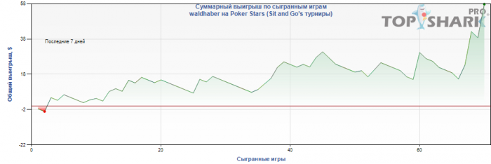 13.10. - 590$ (Тильт кончно ещё та зараза.. сёдня посидел с другом поразбирали мои вчерашние руки, ужаснулись, поржали.. ну а результат не заставил себя ждать. Работа над ошибками рулит!!) --- --- --- --- 16.10. - 621$ (играл хорошо, вдумчиво с оценкой окружающей обстановки так сказать. Надо больше разбирать хендхистори, великолепно настраивает на а-гейм) Стараюсь отслеживать свои лики и их причины, так вот из причин самыми частыми являются пожалуй тот факт что могу отвлечь сам себя какими-то интересными или не очень мыслями, самым главным фактором прошу считать: капитуляцию. Скажем остаюсь в ха или с 2-3 типами, я чиплидер закрываю уже 3ий подряд пуш от агроОпа и получаю жёсткий доезд к его мусору, 30% стека уезжает, следующая рука что-то типа 10-10, пушу или разыгрываю, по-ситуации, получаю ещё переездик или кулер что интнреснее, и снова поплыл почтистек к везунчику. И нет бы продолжать играть как надо.. я сдаюсь.. и стек вроде есть посопротивляца и рядом такой же шортстек.. и т.п. но я дался.. Надо себя приучить Всегда бороться до последнего, ведь не раз себе доказывал что и шорт может победить.. не всегда же мне не везёт Короче , мать её дисциплина хромает, надо работать. 17.10. - 631$ 18.10. - 676$ 19.10. - 706$ --- --- --- --- --- --- 23.10. - 722$ 24.10. - 703$ (довольно мощное невезение. неприятно, тем более что доводил бр до 740$) 25.10. - 647$ (оказалось, что не казалось.. это сука даунстрик. Давненько такого небыло. График за последнюю неделю.. для наглядности) 26.10. - 643$ (отыграл около 15 турниров.. максимально собрано и вдумчиво, но ничего не мог поделать против полнейшей невезухи. Даже удивительно что отыграл почти в ноль.) 27.10. - 653$ (очень важно во время стрика играть агрессивно. Меньше колить, больше рейзить. Понятно что всегда так нужно.. но во время непрухи важность дисциплины возрастает в разы!) 28.10. - 654$ 29.10. - 652$ 31.10. - 616$
