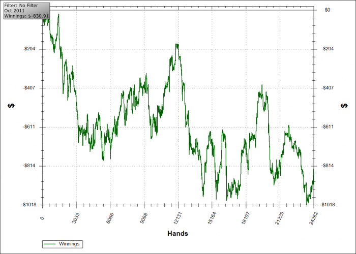 На ноябрь в планах отыграть не менее 50к рук с профитом не ниже 1к. На данный момент картина следующая: