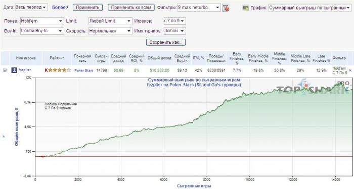 Привет, меня зовут Роман. Я играю 9-макс снг(не турбо) на ПокерСтарз, ХМ не использую. Моя статистика и график : В данный момент не имею банкролла. Решил попробовать найти бекера(-ов), т.к. подниматься вновь с микролимитов желания нет. Хочу продать доли на марафон из 2к турниров. Планирую играть снг 15$ и 30$ лимитов в соотношении 2 к 1 за 30-35 дней. Средний бай-ин 20$, банкролл марафона - 1000$(50би). Откат от профита 30%. Рейкбэк идет в профит. В продаже 100%,минимальная доля 5%(50$).