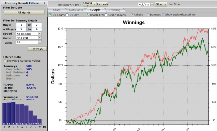 sng 9max (ne turbo) ну единички быстро побил...1-2 дня..начал 3шки доехал на 100 баксов в 1$ мтт...бр был под 400...но всетаки мтт шная моя душенка!) начал катать все и вся... но топ 18 тормозился и все((( ну так залился...особено после пьянок садился катать...