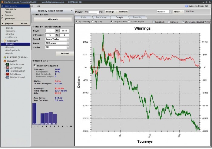 Последние достижения : первые 300-330 игр от бекера, дальше на свои барахтался. 1-ый результат в минус 64$, это все байины от 1e и до 100e. 2-ой результат - байины 1-50e.