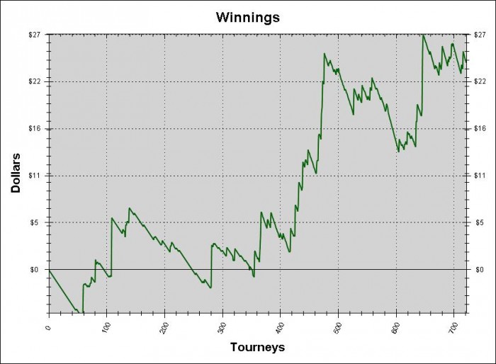 Сегодня по мне очень хорошо поездили. Сыграно ~70 туриков, хотел сыграть в 2 раза больше но решил что на сегодня хватит ибо первые 4 часа у меня не тащилось абсолютно ничего. Щас доигрываю посл. финалку. 1 первое место, 1 второе и парочка третьих. ROI&ITM -32%&11% соотв. Жду вывода на бвине, там 31$, на старзах 11$ плюс вот эта финалка. Сегодня отыграл на 4+, сделал пару не оч. минусовых мувов, а так оч. доволен. Пушбот прокачан на четверочку. по 5 бальной шкале. Вот и все. С завтрашнего дня расчитываю перейти на 0.5$ не турбо. При БР = 25$ перейду обратно на 0.25$. Еще осталось добить 44VPP для бонуса в 10$ и еще чутка побольше VPP для бонуса от 1 депа