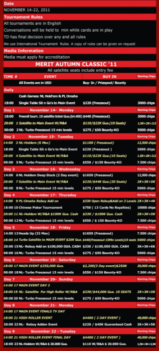 Merit Autumn Classic 2011, с 14 по 22 ноября 2011 с Гарантией более 600 000 долларов!!!