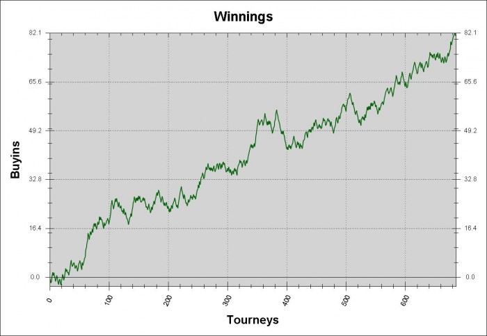 В продолжение. Почему в этом разделе после мтт? Причина банальна – работа. В последнее время ее становилось все больше и играть после нее продолжительные мтт становится тяжелее, а жить на хроническом недосыпе, как показала практика, - не айс. Кроме того, я заметил, что меня достаточно сильно стали расстраивать какие-нибудь бедбиты, получаемые в конце какого-нибудь шестого часа игры, которые оборачиваются получением 2-3 БИ. Все это привело к тому, что мой график по мтт на старзах описал вот такую загогулину