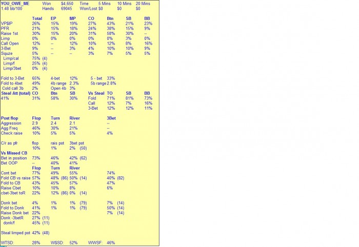 Ну у него фолд ту 4бет 45%. я из за короткого стека думал этого достаточно, насчет размера рейза согласен, ошибся. но фолд на sb у него 78% - потому стил самм по себе плюсовый, но гораздо плюсовее минрейз.