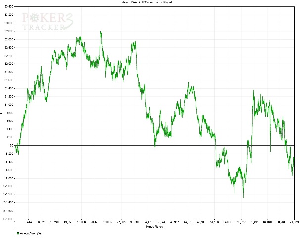 Crying_monster @ 13.12.2011 У меня после "черной пятницы" небольшой минус на 5/10-10/20 (с рейкбеком небольшой плюс), а играть ниже гордость не позволяет. Потому играть почти бросил.