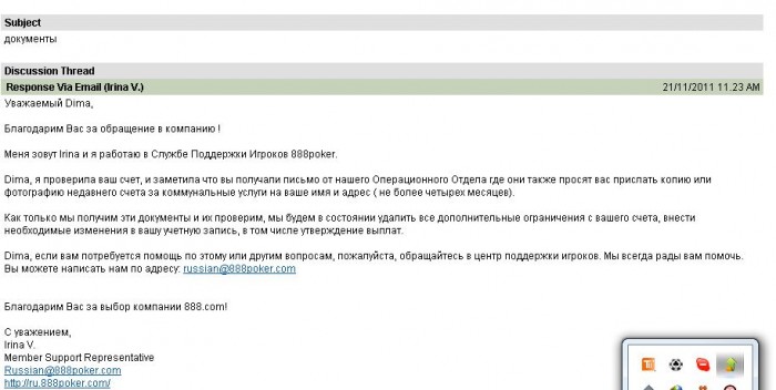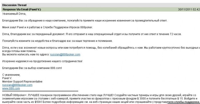 Спасибо за Ваше сообщение, отправленное в 888poker.
