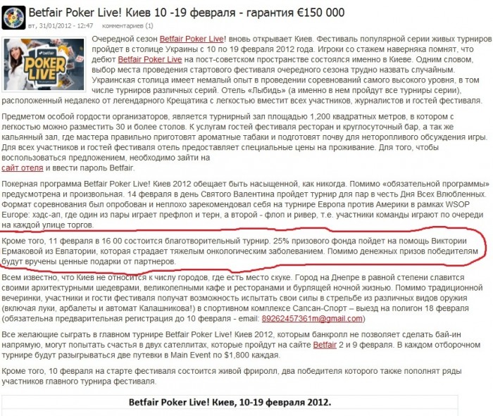 crimea_999 @ 25.1.2012 Mad-Revolver, Если у кого-то есть желание и возможность помочь Вике, я думаю несложно обратиться непосредственно к ней за доказательствами (у нее их предостаточно!). Просто она к покеру отношения не имеет. А моя роль здесь- чисто информативная...
