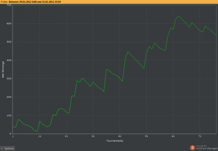 Poker Stars, $6.37 Buy-in (25/50 blinds) No Limit Hold'em Tournament, 8 Players