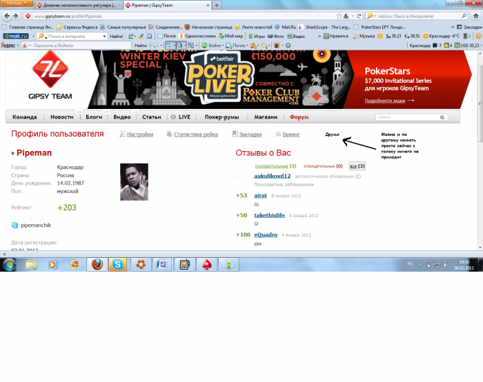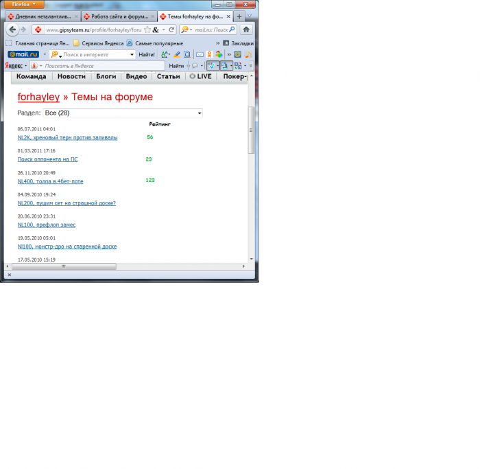 Ну и если мы просто нажимаем на ник пользователя, у нас выходит его профиль в котором также видны созданные им темы и их рейтинг.