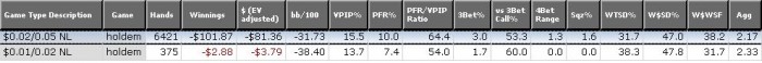 Всем доброго времени суток! Первым постом на форуме стал первый пост в первом моем дневнике(кстати реально первым, этими делами я даже в детстве не промышлял). Хотел было собрать весь свой литературный талант, чтобы написать вступление, но такового у себя не обнаружил. В связи с этим вы читаете то, что читаете О себе решил написать совсем немного ... Это все)) Если что то из написаного обо мне вам не ясно - можете спрашивать, отвечу на все вопросы Итак: 1. Я играю на PS, nl2, nl5 6 max 2. Моему аккаунту уже где то 2 года но играю я всего месяцев 5 максимум, так как меня подсадили таки на покер мои лудоманы двузья. 3. Где то месяц играл 6max SnG. Все было ок, но тут откуда не возьмись появился даунстрик и унес с присущей ему легкостью большую часть БР оставив обмылок в размере 19 УСД. С покером для меня казалось было покончено. Я конечно же поигрывал изредка всякие мтт (без заносов) и СнГ, особого удовлетворения и профита мне это не приносило. Решил раз уж не везет в картах, то ... нужно депнуть и попробовать еще))) Подумав немного решил попробовать обойтись без депозита и я с БР 15 УСД открыл для себя кеш) Играл поначалу совсем не много, рук по 3к в неделю максимум. С февраля же решил наконец то со всей серьезностью подойти к вопросу. Создать дневник я решил, тк как у меня случился первый серьезный стрик и своим умом из него выйти у меня не получается. Почему?Я думаю могут быть 3 причины: или , ну или одно из двух. Так что, дорогие мои, вся надежда на вас, ну и ГСЧ, надеюсь, тоже в этом поучаствует. Цели дневника: 1. Устранить все тысячи тысяч моих ликов. 2. Понять как и в каком напрвлении нужно развиваться. 3. ??? 4. Выйграть все деньги планеты. Свои статы я выложу до и во время стрика, чтобы можно было видеть где я в общем лажаю. ДО: ВО ВРЕМЯ: Если еще какая информация нужна будет - спрашивайте)