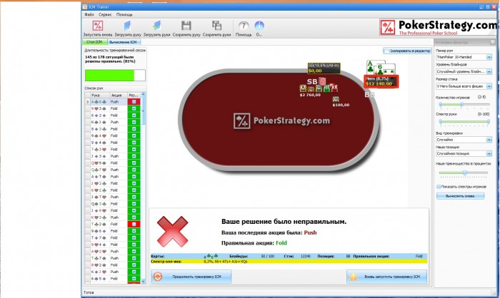 Тренировался сегодня с ICM Trainer , разбирал раздачи , с некоторыми решения , которые предлагал ICM Tr. несколько раз был не согласен , но думаю для того на нем и тренироваться , что бы узнавать для себя что то новое и исправлять лики в своей игре !