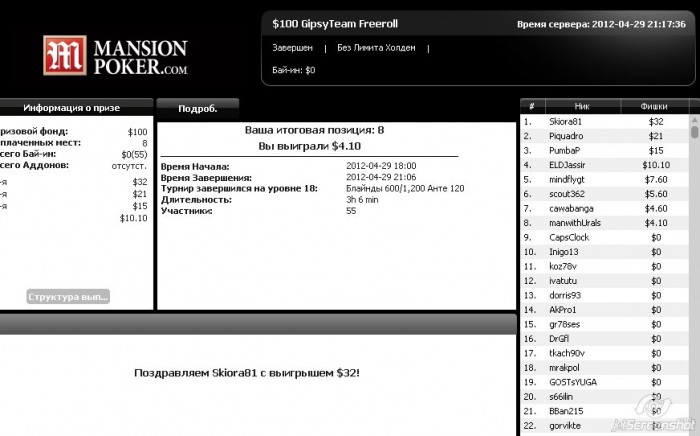 Как найти? В обоих покер-румах вкладка “Tournamets - Private” | “Турниры - Частные”, название “$100 GipsyTeam Freeroll”.