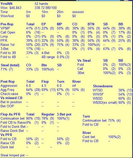 То есть идея понятна, спровоцировать полублеф или добрать с совсем слабых рук. Вот только я не думаю, что по тёрну нам хоть что-то заплатят, кроме как флаш-дро + совпадение (не считая рук сильнее, которые нас не интересуют так как выкидывать мы всё равно не собираемся).