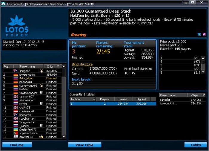 Играю в ЛотосПокере под одноименным ником турниры по 10-20$. Банкролл 3,600$.