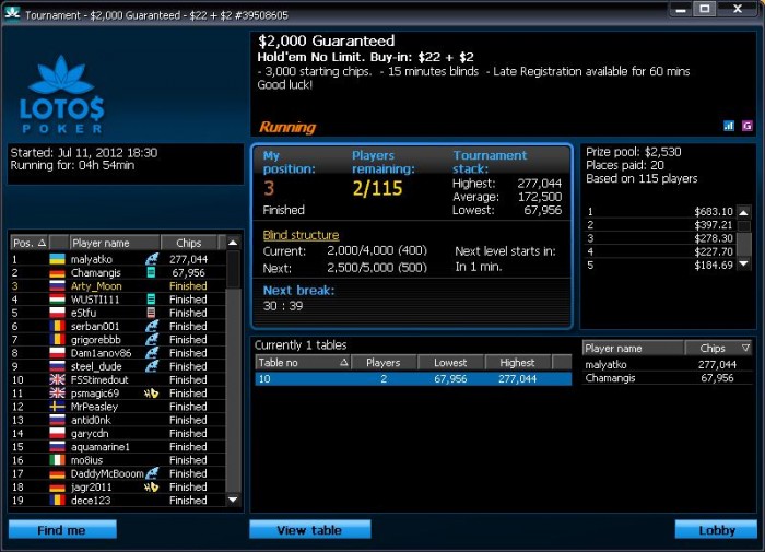 Играю в ЛотосПокере под одноименным ником турниры по 10-20$. Банкролл 2,800$.