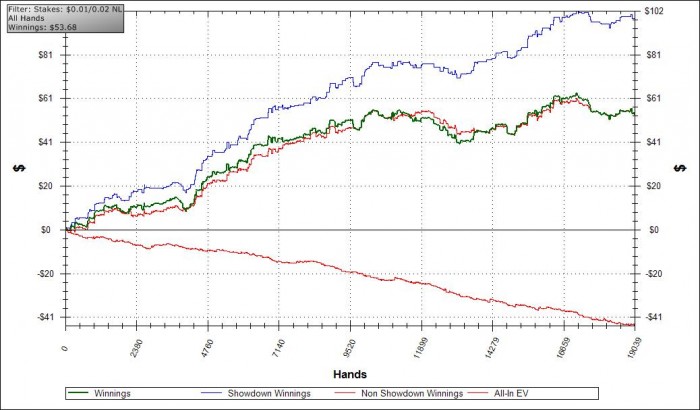 Много колишь 3бетов...наверняка туда утекает значительная часть винрейта. Неплохо бы ещё вывести эффективность кола на ривере...думаю там тоже меньше двух будет.