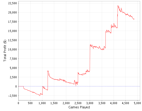 Этот год принёс мне как успехи так и первый даунстрик, всмысле не то чтобы первый, но долгий и дающий понять - что-то не так. И действительно первую часть падающей линии я не могу отнести к дауну, это скорее попытка покорения 33-го лимита, но не покорился он мне скорее из-за психологического фактора нежели недостатка скила. Правда проверить это в данный момент не представляется возможным, т.к. вторая часть падающей линии действительно была даунстриком, пришедшимся на май и на scoop, и она ( линия ) довела мой БР до печального состояния. Предугадывая вопросы - весь остальной профит был кэшаутнут.