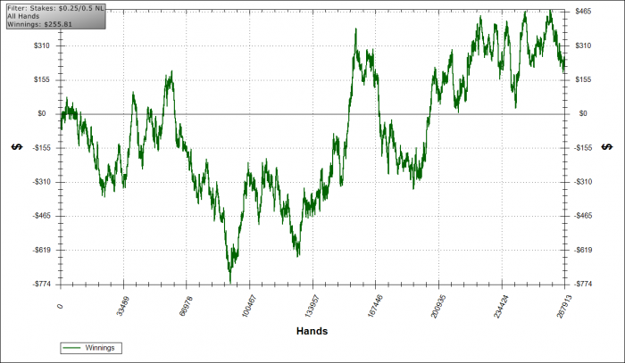После этого отыграл немногим меньше 300k рук на NL50 в ноль