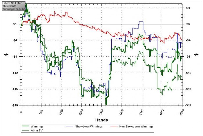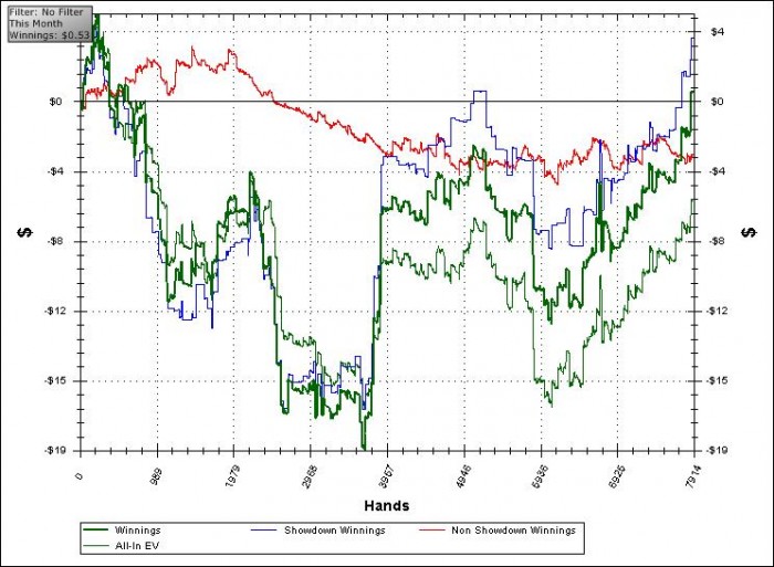 Ребят, вы прикалываетесь штоле?)) С каких это пор винрейт 2,5 бб/100 стал радостным? 2,5 бб на нл25 это 0,625 цента на 100 рук, т.е. 6,25$ на 1000. Для среднего рега нл25 хорошим считается заработок в районе 1К$ в месяц. Ну и сколько вы собрались катать, чтоб достичь этой цифры - 150К в месяц? И что мешает играть 5-7бб/100 - зум с его перекосами? Тогда проще меньшую дистанцию набивать за обычными столами с адекватными ГСЧ и винрейтом.
