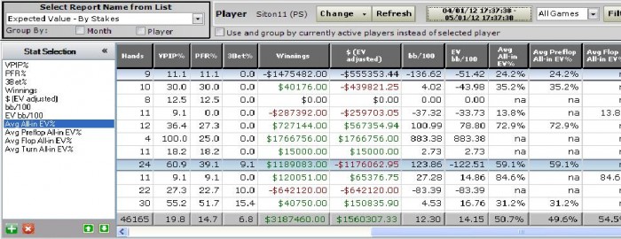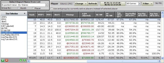 Кстати мой средний префлоп ОЛЛИН 48%. Какой должен быть показатель регуляра? Может я слишком часто выставляюст префлоп или наоборот мало?Может это как-то влияет на результат в деньгах на дистанции?