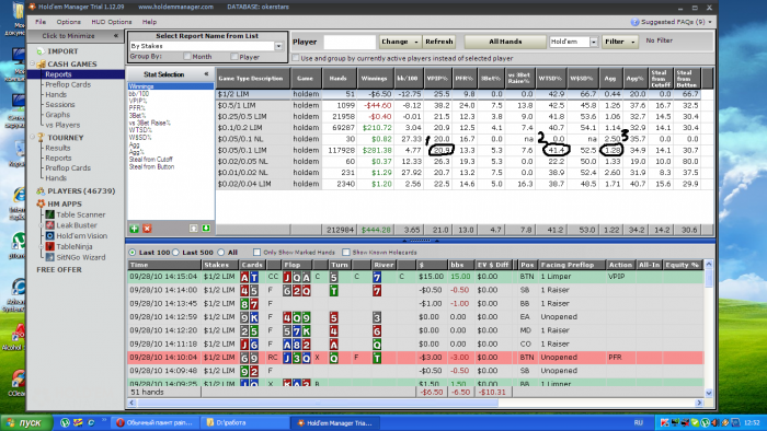 Играю мало и пока только микролимит холдем(лимит). Играю 1-2стола.Вместе с бонусами накатал 750-800 бачей. Так посмотрите,уважаемые форумчане-может кто совет по игре даст. По мне так(см.статы): 1-низкии 2-чуть высокии 3-низкии Заранее спасибо за ответы