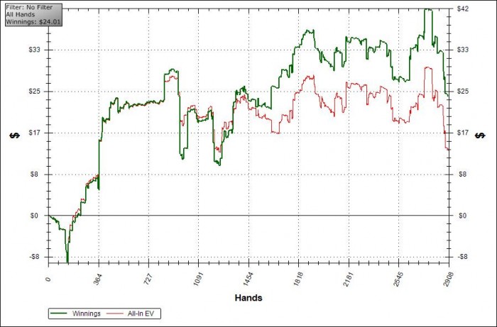 На графике видно что есть перебор по EV хотя не понимаю конечно как это считается, вроде в местах как мне кажется где я выставлялся с верху, перебор, а где с низу там проигрывал, ну да ладно не суть важно, особо за этим не слежу.