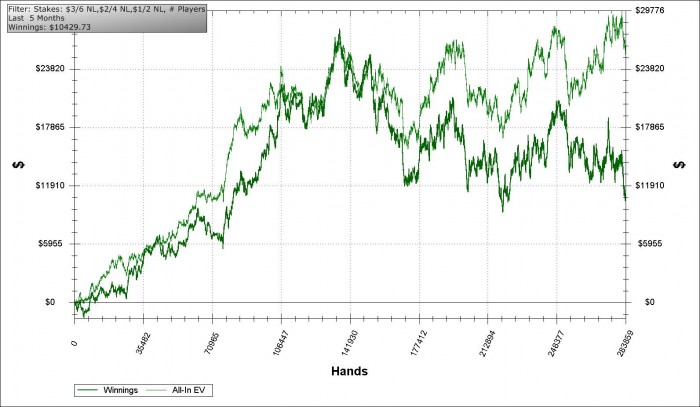 И вот вчера перед сном, у меня в голове все вертелось это «главное вовремя остановиться», а меня, дурака, ничему жизнь не учит. На отметке, когда было уже 5.5к, я подумал: да ладно, ну что может случиться за 1-2к рук, докатаю 10к по плану. ИДИОТ.