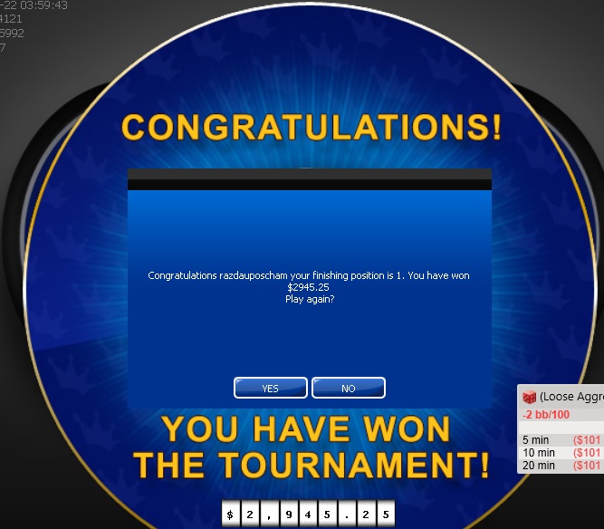 Для достижения целей необходимо регулярно играть, усиливая свою игру. Если в задротстве мне еще можно позавидовать, то в усилении игры врядли. Мне кажется я завис на уровне игры регов полугодовой-годичной давности вторичных румов. Однако я все же рег, и от этого буду отталкиваться.