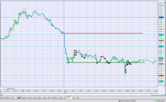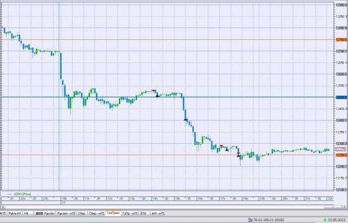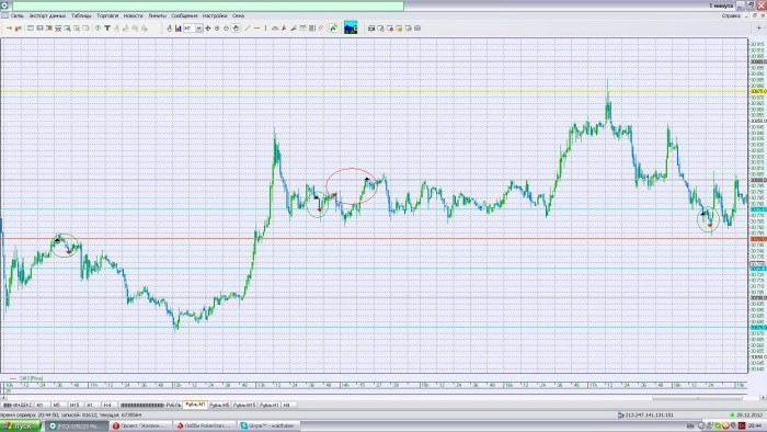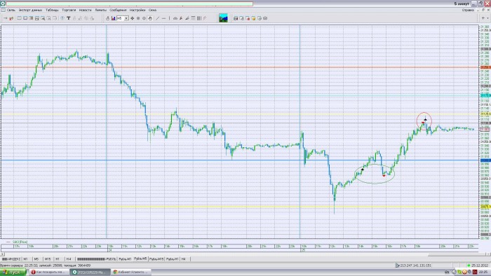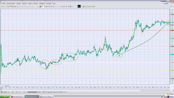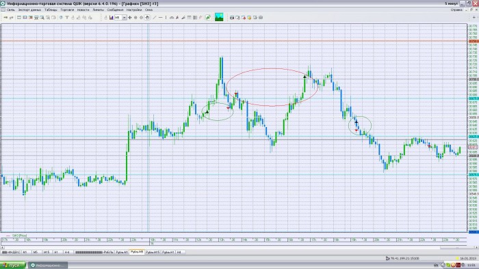 11.01.13 Результат: + 68 пунктов ; кол-во сделок: 2. Примечание: По техническим причинам и распиздяйству не смог закрыть последнюю, 3ю сделку, а перенос открытых позиций через выходные(без достаточной накопленной прибыли) весьма череват.. Благо что одним контрактом всего. Всё-равно ошибка давольна прискорбная.