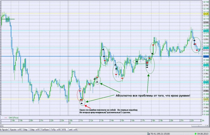 Самой главной своей проблемой сейчас считаю отсутствие терпения.. другими словами - спешка, отсюда переторговка там, где торговать вообще не надо.