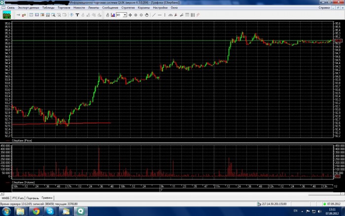 Итак, у нас есть кеш в системе( надеюсь минимум пока), мы изучили quik и готовы купить или продать чего-нибудь). Берем для начала 1 лот(ВТБ24) -примерно 530 рублей и тренируемся. Тренируемся только на 1 лоте ВТБ.